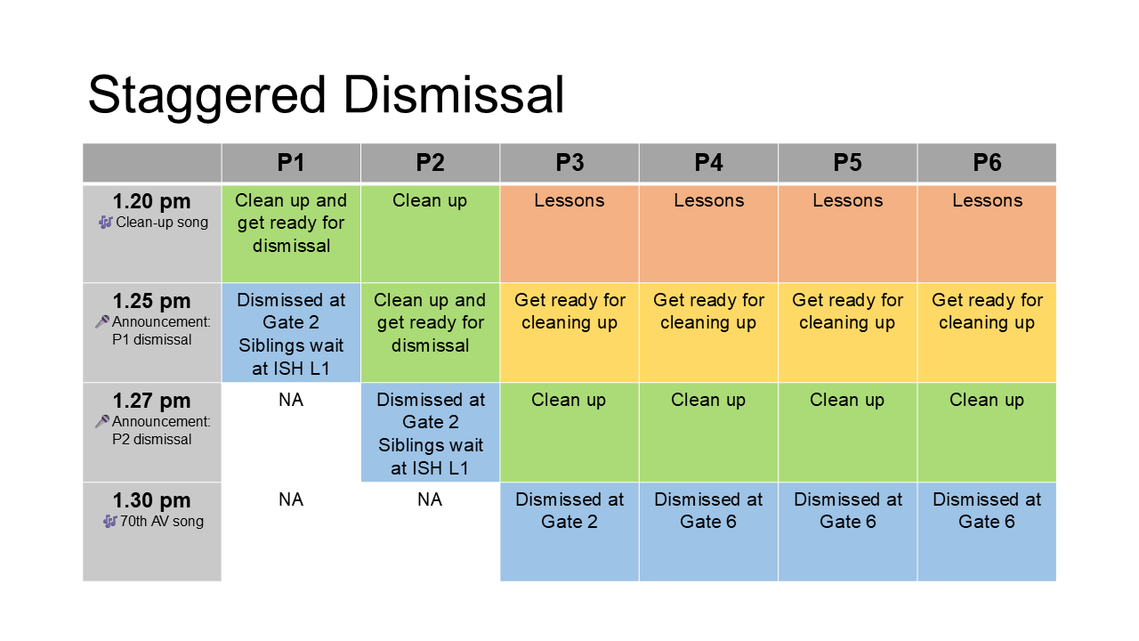 All Primary 4 to 6 students will be allowed to exit the school via Gate